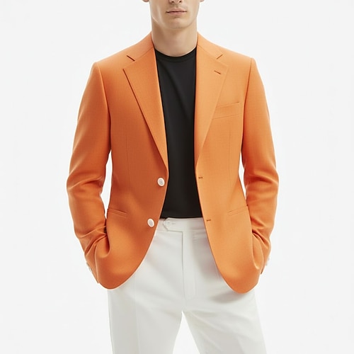 Per uomo Blazer di Lino Colletto ad incastro Moda Classico Casual Tinta unita Blazer in lino Nero Bianco Rosa Vestibilità su misura Monopetto Due Bottoni