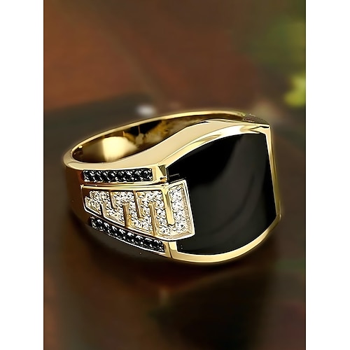 anello in lega da uomo - accenti di diamanti bianchi e neri, colori oro e argento, design elegante per occasioni formali e informali