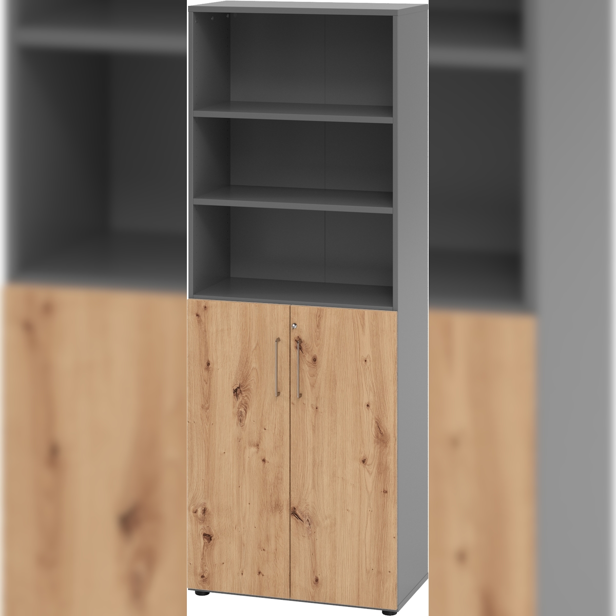 bümö Aktenregal & Schrank abschließbar, Büroschrank Regal Kombination Holz 80cm breit in Graphit/Asteiche - abschließbarer Schrank für's Büro &