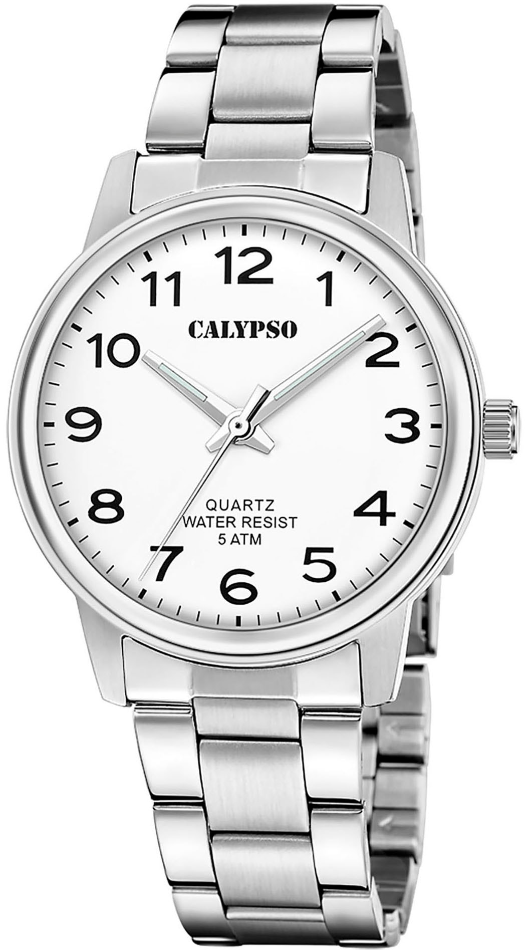 Quarzuhr CALYPSO WATCHES "Basic", silber (silberfarben, weiß), Armbanduhren, Herren, Armbanduhr, Herrenuhr, Edelstahlarmband, analog