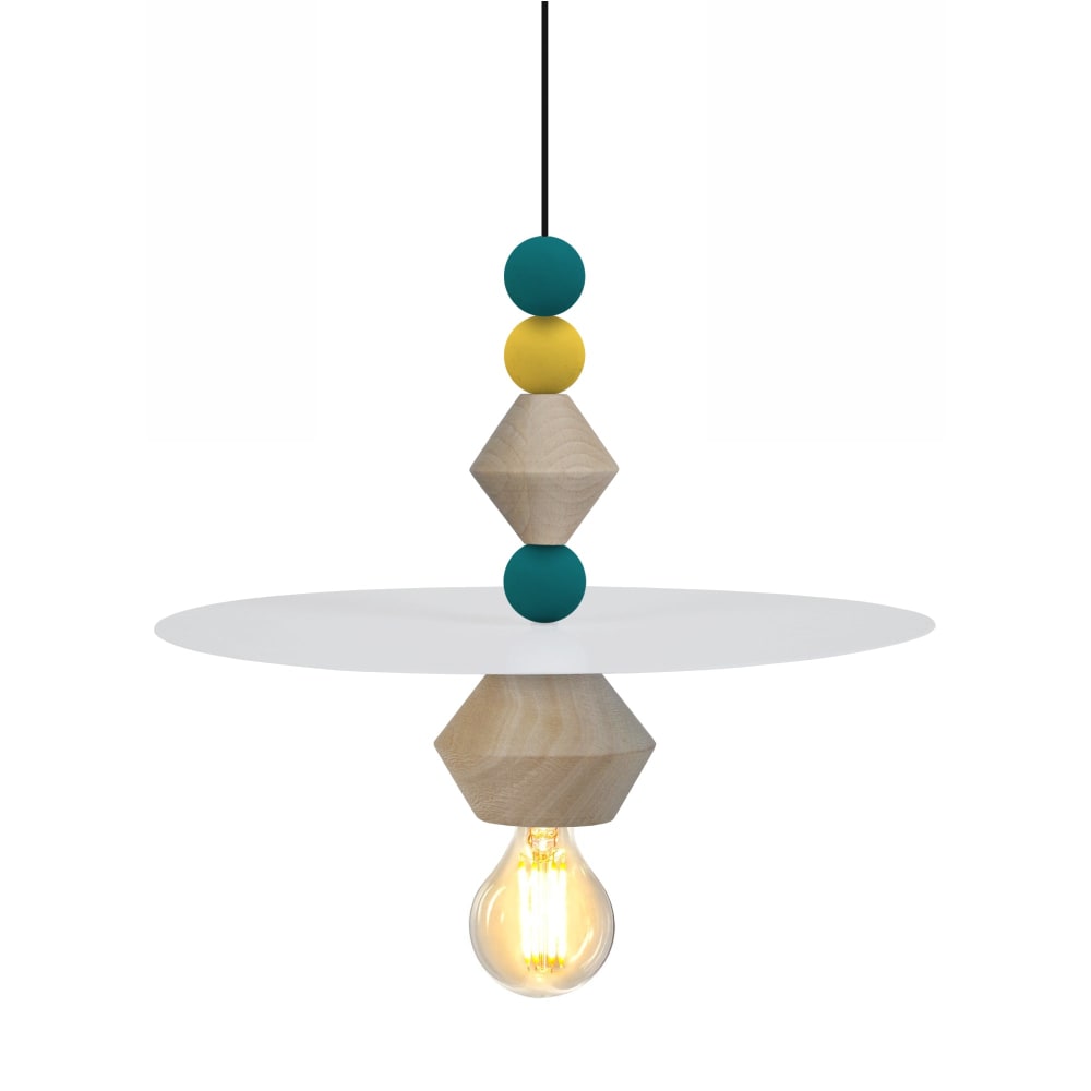Sospensione legno ,metallo ; Alt.80cm nero ;Paralume: bianco