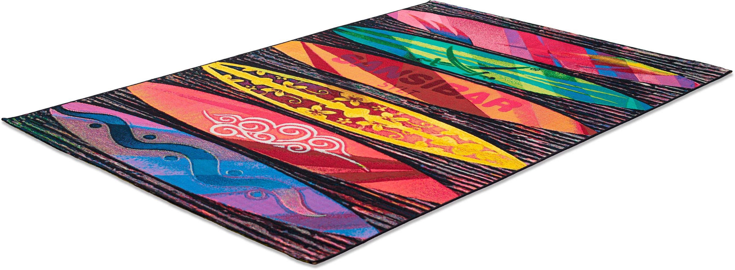 Teppich SANSIBAR "Rantum Beach SA-020", bunt, B:130cm H:5mm L:190cm, Polypropylen, Teppiche, Flachgewebe, modernes Design, Motiv Surfbretter, Outdoor geeignet