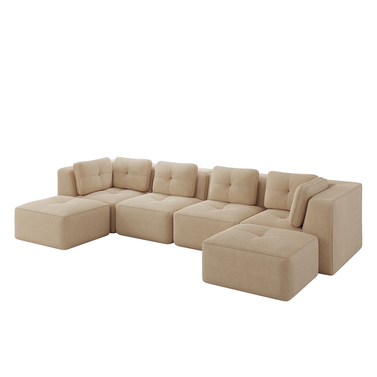 Merax 4-Sitzer Modulares Sofa mit 2x Hocker, Cloud Sofa Cord rahmenlos, Lounge Sofa bodennah, mit breiten Armlehnen, Beige