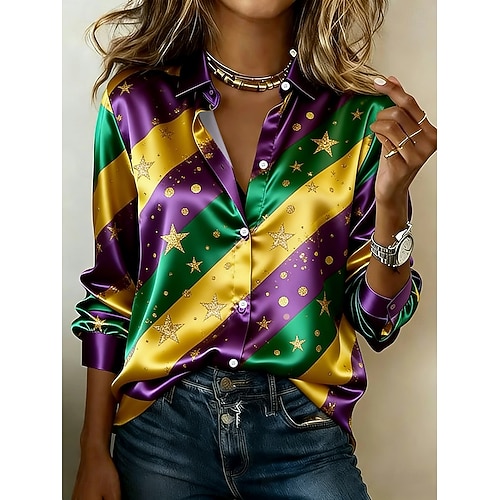 Martedì grasso Per donna Camicia Grafico Geometrico Vintage Elegante Moderno Manica Lunga Colletto a Camicia Top lunghi Quotidiano Ferie Giallo Viola Estate Primavera