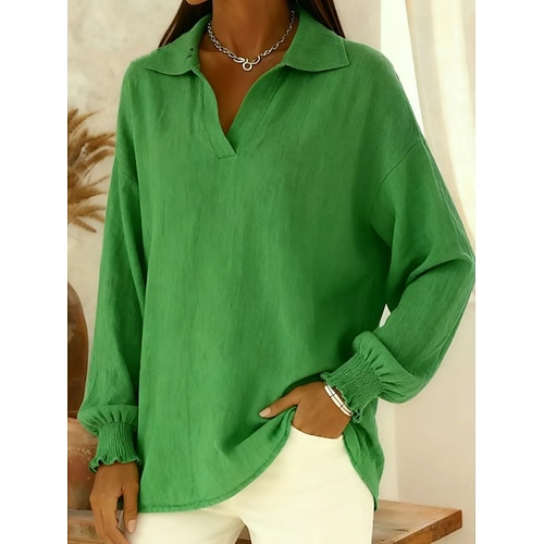 Per donna Camicia popover Camicia casual Blusa Bottoni Tinta unica Vacanza Quotidiano Elegante Manica Lunga Collo ripiegato Top Regolari Quotidiano All'aperto Ferie Blu Nero Rosa Verde Primavera