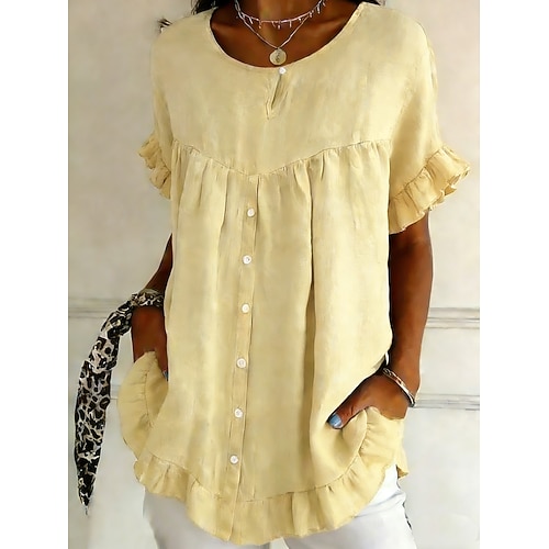 Per donna Camicia Camicie di cotone e lino Blusa Camicia con volant Volant Semplice Elegante Classico Moderno Manica Corta Girocollo Top Regolari Quotidiano Ferie Uscire Nero Bianco Giallo Verde