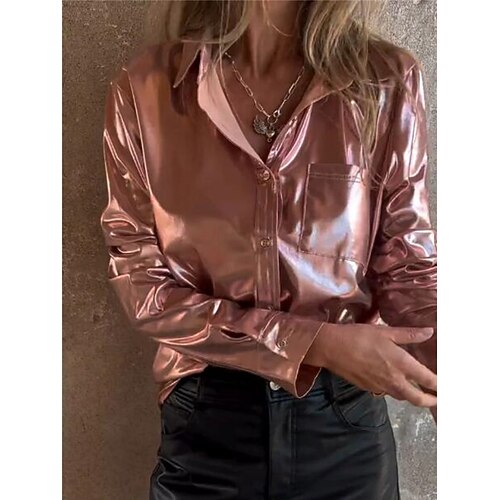 Per donna Camicia elegante Blusa Bottoni Tinta unica Elegante Manica Lunga Collo ripiegato Top Regolari Quotidiano All'aperto Feste Argento Rosa Albicocca Primavera Autunno