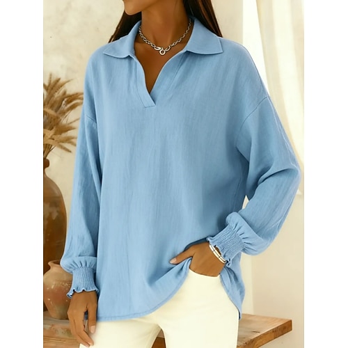 Per donna Camicia Elegante Essenziale Casual Manica Lunga Top Regolari Blu Nero Giallo Rosso Viola Primavera, Autunno, Inverno, Estate