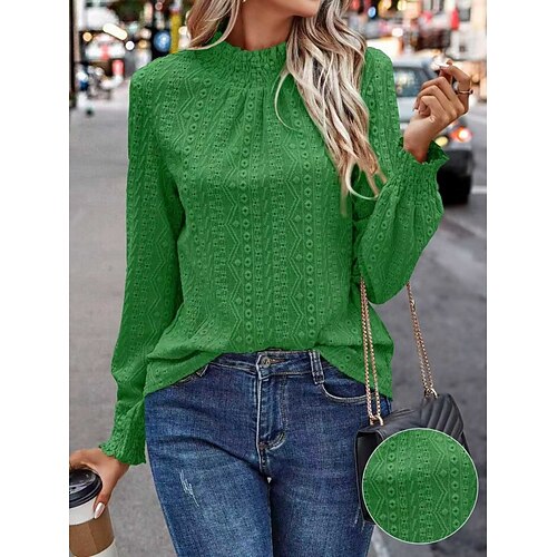 Per donna Camicia popover Camicia casual Blusa Traforato Tinta unica Elegante Essenziale Casual Manica Lunga Collo alla coreana Top Regolari Quotidiano All'aperto Ferie Blu Viola Verde Albicocca