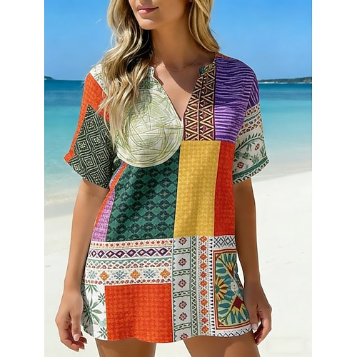 Per donna Camicia Camicia casual Camicia da Spiaggia Blusa Stampato Floreale Grafico Bohemien Elegante Moderno Manica Corta Scollo a V Top Regolari Quotidiano Ferie Uscire Blu Giallo Verde chiaro