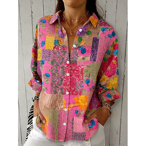 Per donna Camicia Bottoni Stampato Floreale Grafico Paisley Vintage Elegante Moderno Manica Lunga Colletto a Camicia Top Regolari Quotidiano Blu Rosa Arancione Verde Estate Primavera