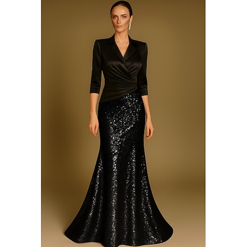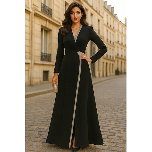 Per donna Abito da smoking Linea ad A Matrimonio Formale Tessuto elasticizzato a 4 vie Elegante Scintillante Manica Lunga Lunghezza al pavimento Scollo a V Doppiopetto