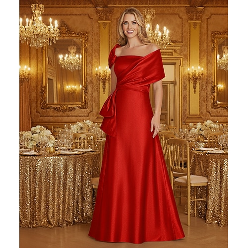 Linea ad A Lunghezza al pavimento Abito da Sera Da principessa Abito formale Elegante Scintillante Setoso Senza Maniche Senza Spalle Matrimonio Formale Tasca Raso Elasticizzato con Fiocco/Fiocchi