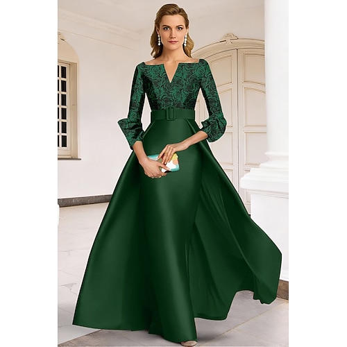 Per donna Abito da smoking Linea ad A Matrimonio Formale Ospite di nozze Raso Elegante Setoso Manica Lunga Lunghezza al pavimento coscia divisa Scollo a V