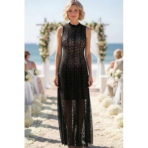 Due Pezzi Linea ad A Lunghezza al pavimento Abito da invitata a nozze Abiti da festa Elegante Senza Maniche Collo Alto Matrimonio Ospite di nozze con Pizzo