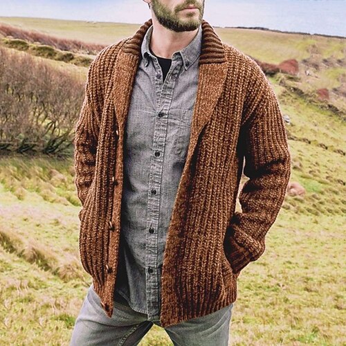 Per uomo Felpa Cardigan A Coste Maglia Top Regolari Cardigan con Bottoni Semplice Collo a scialle Vacanza Moda Casuale Abbigliamento quotidiano Abbigliamento Primavera Autunno Marrone scuro