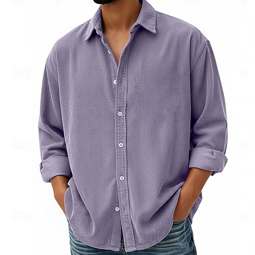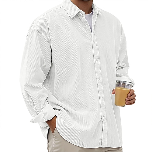 Per uomo Camicia Camicia casual Camicia di Velluto a Coste Camicia con Bottoni Nero Bianco Blu marino Blu Viola Manica Lunga Collo ripiegato All'aperto Streetwear Abbigliamento Vintage Casual