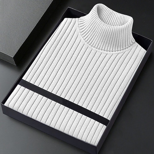 Per uomo Pullover Maglione Maglione lavorato a maglia A coste Maglia Standard Lavorato a maglia Liscio Collo a lupetto Essenziale Tenere al caldo Da tutti i giorni Per uscire Abbigliamento Autunno