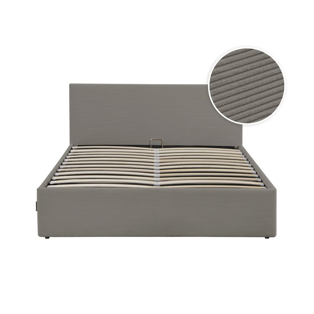Cadre de lit avec coffre de rangement velours côtelé gris - 140x190cm