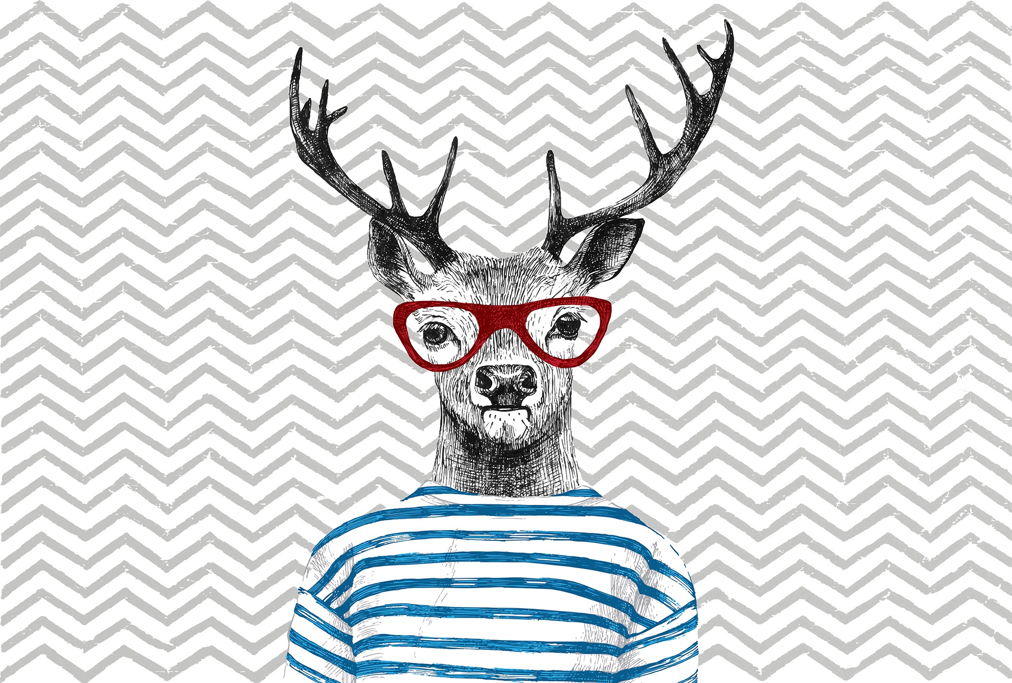 Fototapete ARCHITECTS PAPER "Atelier 47 Modern Deer 3", grau (blau, rot, grau), B:4m L:2,7m, Vlies, Tapeten, Vlies, Wand, Schräge, Decke