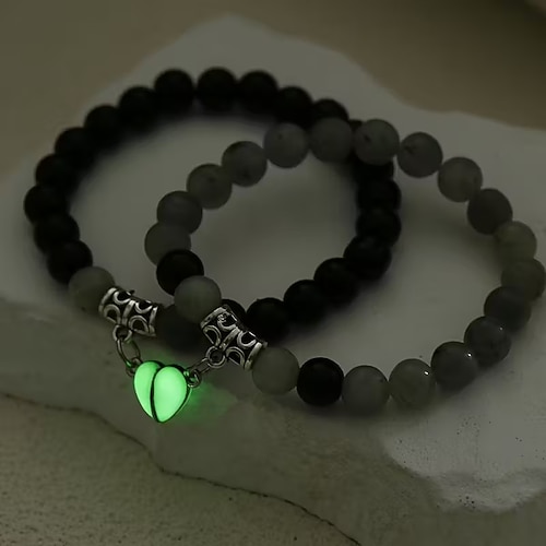 Set di 2 braccialetti a cuore con perline per coppie di San Valentino braccialetti abbinati in pietra naturale per fidanzato e fidanzata braccialetti con charm a forma di cuore intrecciati a mano in