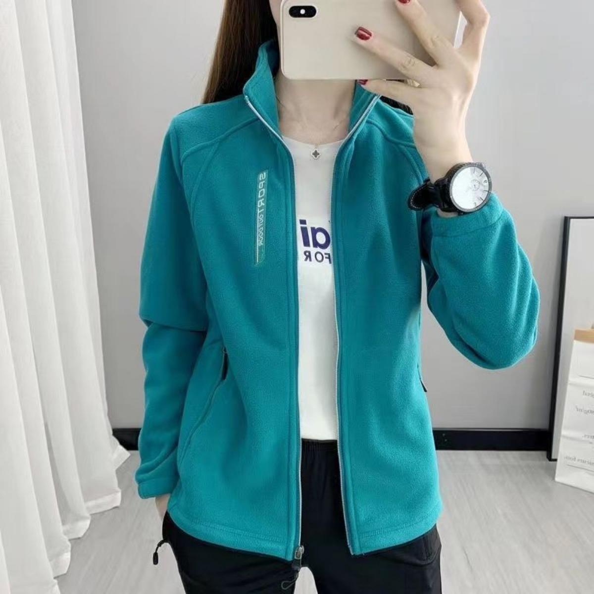 Polarfleece Jas voor Dames, Casual Fleece Jas, Opstaande Kraag, Dik Vest, Sport Outdoor Hoodie, Warm en Dik, Warm en Knus cm wit