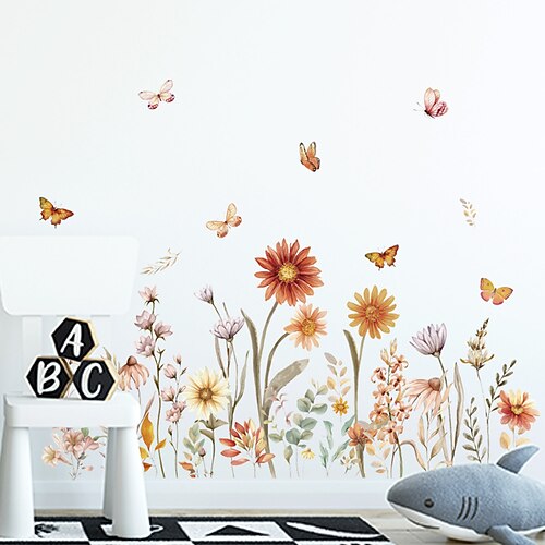 Adesivo da parete con fiori autunnali, design con farfalla e fiori autunnali, decalcomania da parete rimovibile per soggiorno, cucina, cameretta dei bambini, decorazioni per la casa, sfondo creativo,