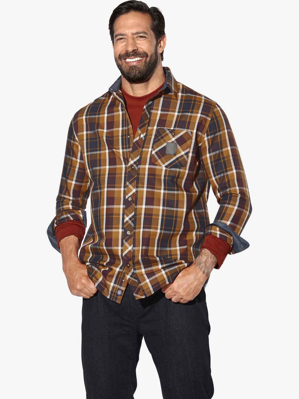 Jan Vanderstorm Hemd Herren Comfort Fit Baumwolle cognac, 5XL