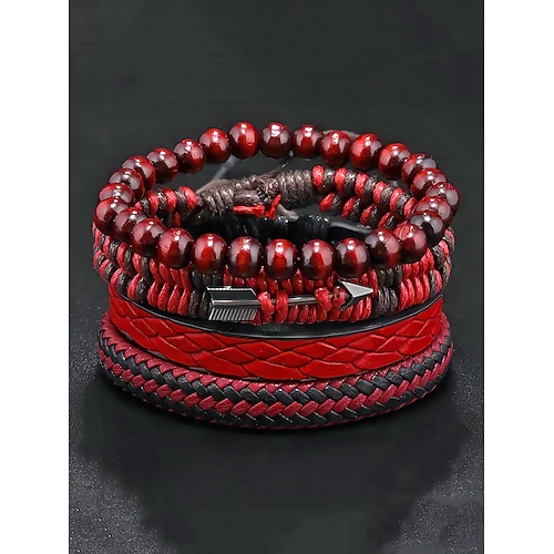 Set di braccialetti da uomo con perline in pelle – gioielli da polso retrò intrecciati multistrato per uno stile casual e un regalo di Natale