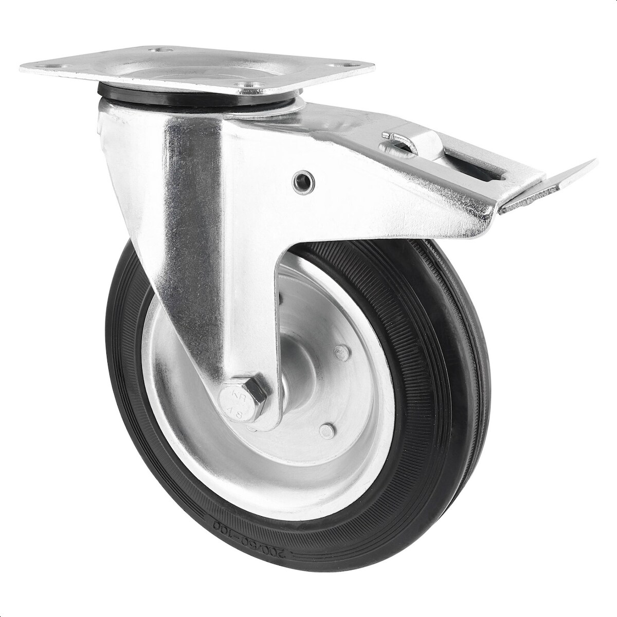 WAGNER Soft-Lenkrolle - Ø 200 mm, Stahl Felge verzinkt, Vollgummi, Bremse & Platte, Tragkraft 210 kg - 04720001