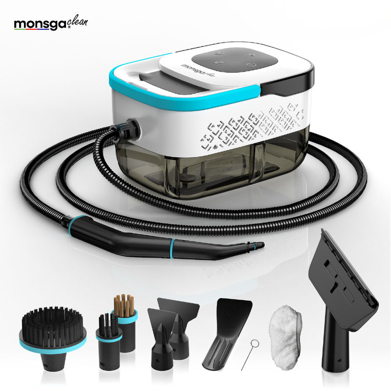 Monsga C2 Nettoyeur vapeur multi-usage pour la maison et l’auto, chauffe rapide en 15 s avec réservoir de 1,6 L, nettoyeur vapeur haute pression à 6 niveaux réglables pour le nettoyage des voitures, les joints de carrelage, les sols et les tissus d’ameublement