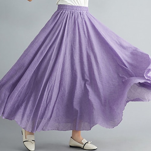 Per donna Gonna Elegante Moda Maxi Vita media Gonne Semplice Arricciato Micro-elastico Vacanza Streetwear Blu Estate Cotone Cotone Lino