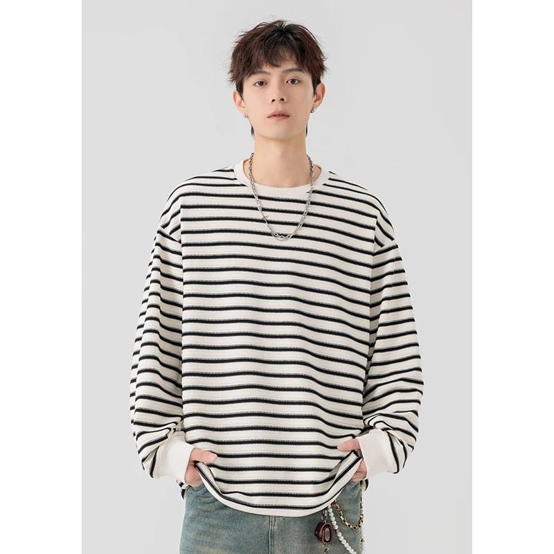 2026 Spring Men Striped Sweashirt Mens O-Neck T-Shirt Men Long Sleeve Base Shirt Male Vintage Tops Tees Unisex Pullover cm red