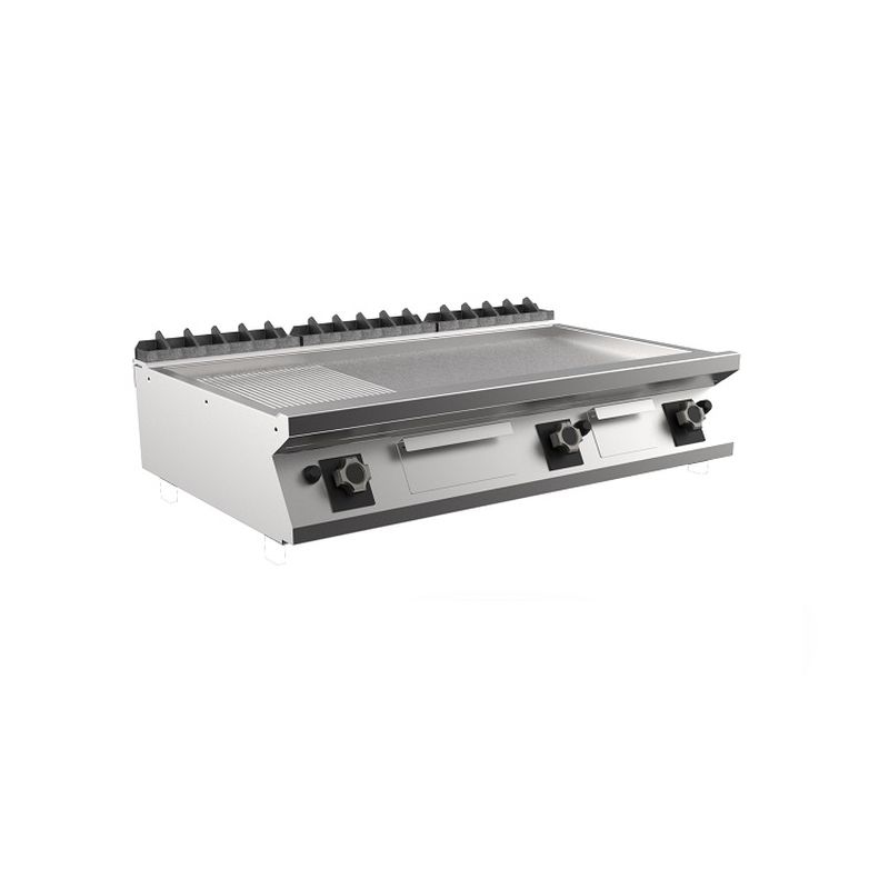 Mareno M1-900 Gasgrillplatte mit 2/3 glatter und 1/3 gerippter mattverchromter Platte, 120cm