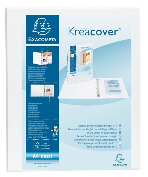 Exacompta Präsentationsringbuch mit Taschen, weiß, 4 Ringe D, 20 mm, mit 2 Klarsichttaschen außen