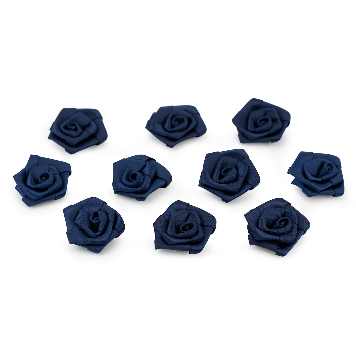 Creativery Satinrosen 3cm 10 Stück Stoffblumen zum Basteln Dekorieren Hochzeit Geschenkverpackung Blütendeko Tischdeko Handarbeit Stoffrosen Deko Blumen Blau