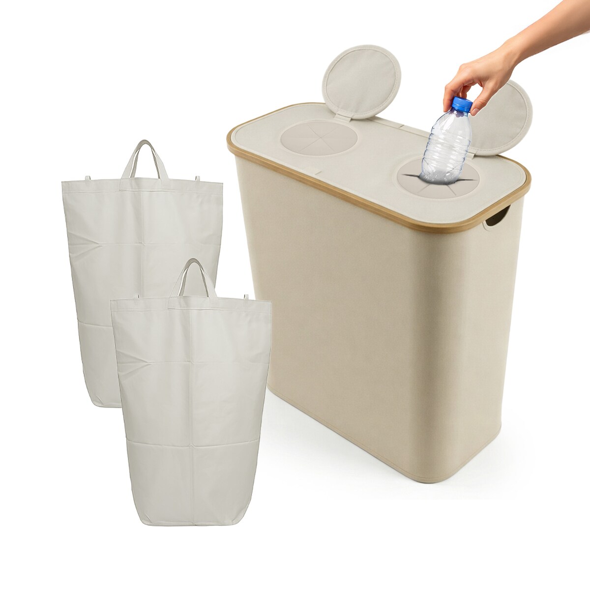 Relaxdays Pfandflaschen Sammelbehälter, 140 L, bis 60 Flaschen, 2 Innenbeutel, Flaschensammler für Glas & Plastik, beige