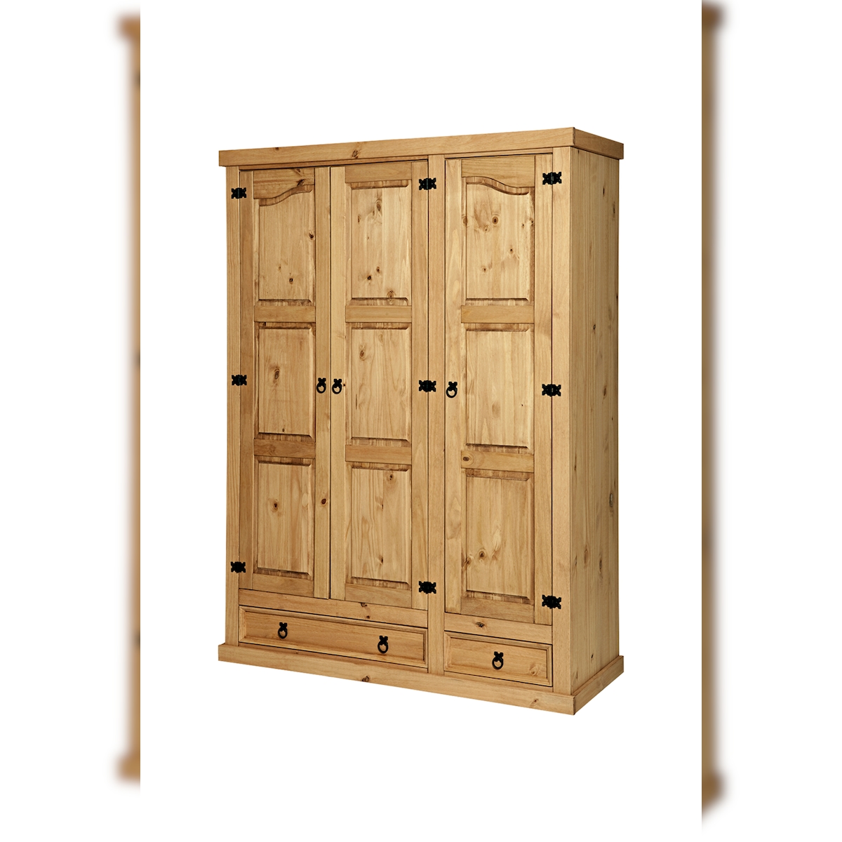 SIT Möbel Kleiderschrank | 3 Türen, 2 Schubladen | Kiefer-Holz massiv | Natur | B 151 x T 56 x H 205 cm | 19001-34 | Serie SCHRANK