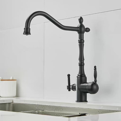 rubinetto da cucina, ottone antico monocomando un foro beccuccio standard centerset rubinetti da cucina girevoli contemporanei con interruttore freddo e caldo