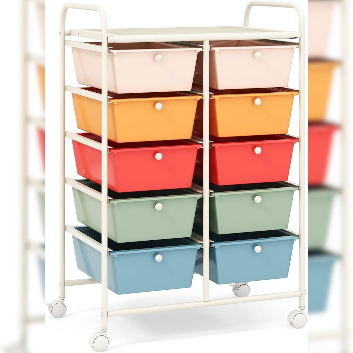 COSTWAY Rollwagen mit 10 stapelbaren Schubladen, Schubladenwagen, Rollcontainer mit Metallrahmen und Regal