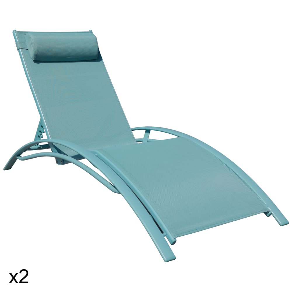 Set di 2 sedie a sdraio in textilene azzurro con struttura azzurra