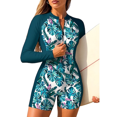 Per donna Top sottomuta Costume Intero Floreale Stampato Asciugatura Rapida Leggero Traspirante Manica Lunga Body costume da bagno Cerniera Frontale Surf Spiaggia Sport Acquatici Estate