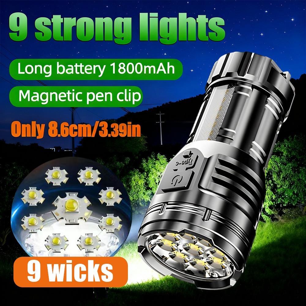 9-Kern Monster-Taschenlampe mit Magnetfuß, COB-Seitenlicht, Geeignet für Notstromausfälle, Garagen, Camping, Partys, Nachtsicherheit