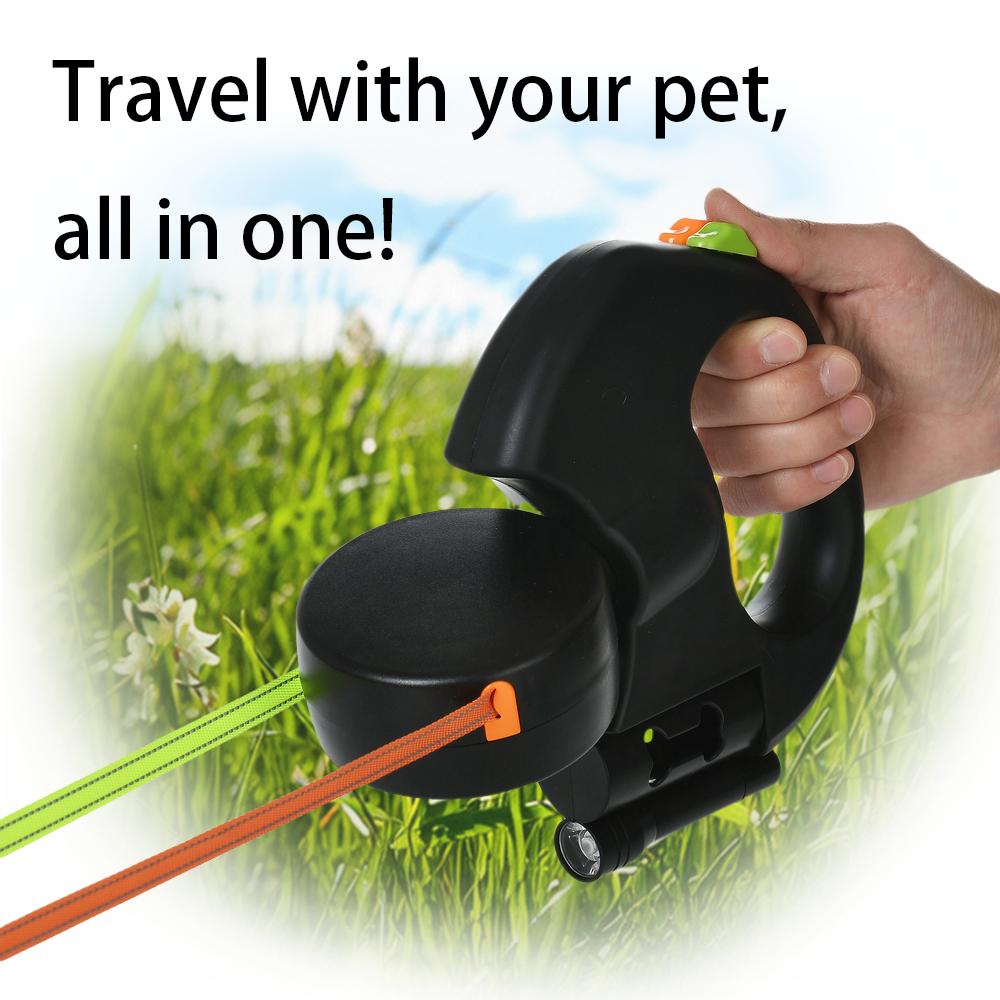 3-in-1 Doppelleine für Hunde (große und kleine Hunde) mit Taschenlampe, doppelt reflektierendem Seil und automatischer Verlängerung für große Hunde ro