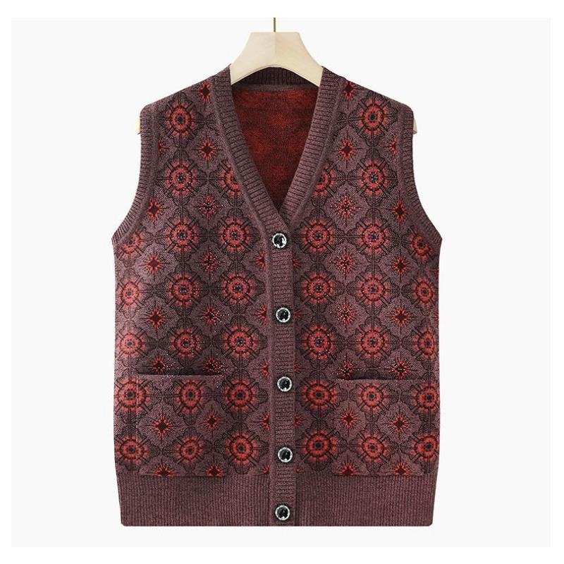Kamizelka dla seniorów Kamizelka babci Sweter Dzianinowy kardigan Ubrania Jesień Zima Kurtka cm czerwony