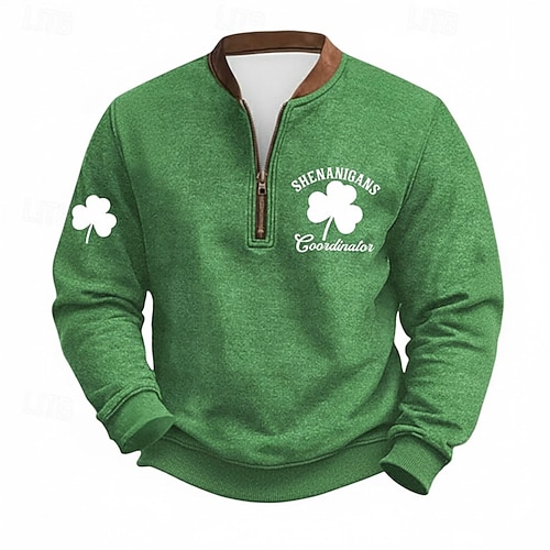 Giorno di San Patrizio Per uomo Trifoglio Felpa per la festa di San Patrizio Felpa Moda Streetwear Quotidiano Classico Manica Lunga Zip a un quarto All'aperto Uscire Festival Verde scuro Verde Verde