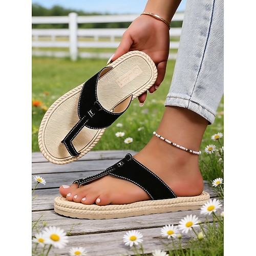 Summer New Large-size Wedge Sandals for Women’s Shoes, Thick-soled Toe Wrap Heel Ring Strap Cloth Hemp Rope Sandals cm white