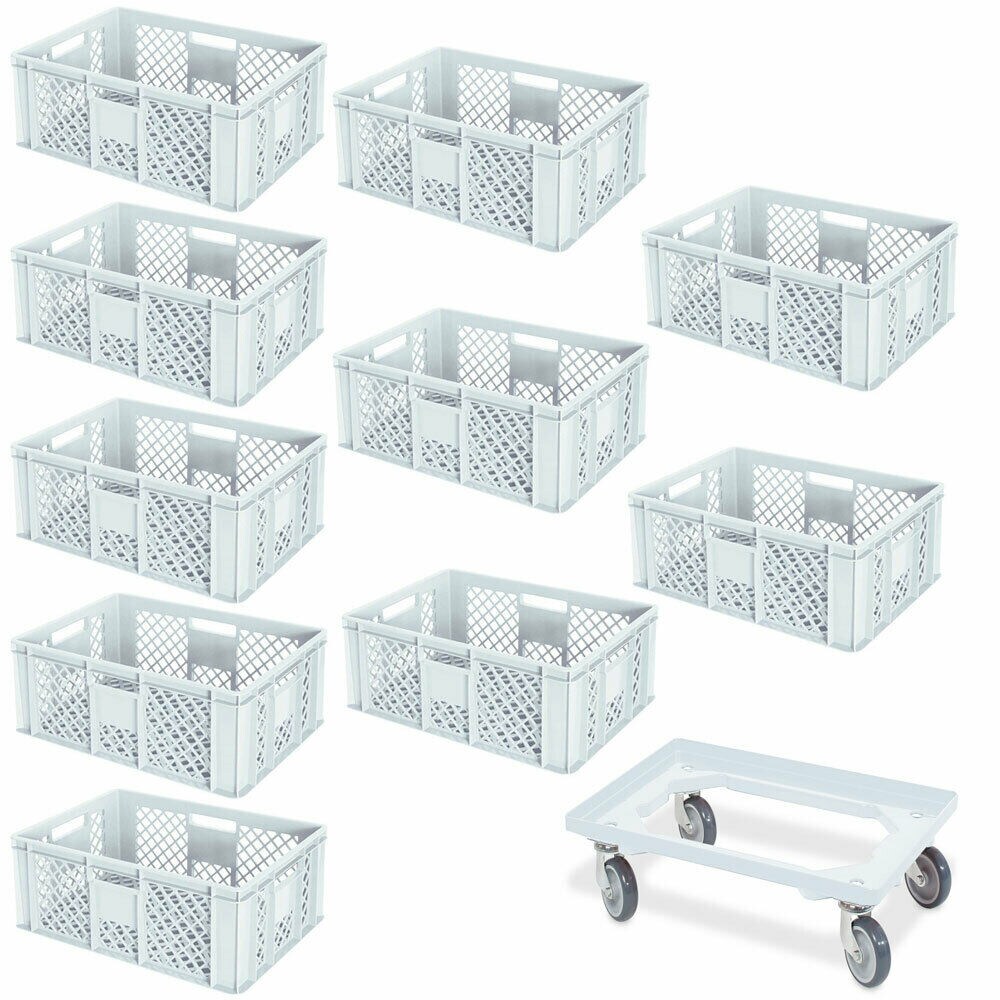 BRB 10 Euroboxen, 600x400x240 mm, weiß, lebensmittelecht + Transportroller