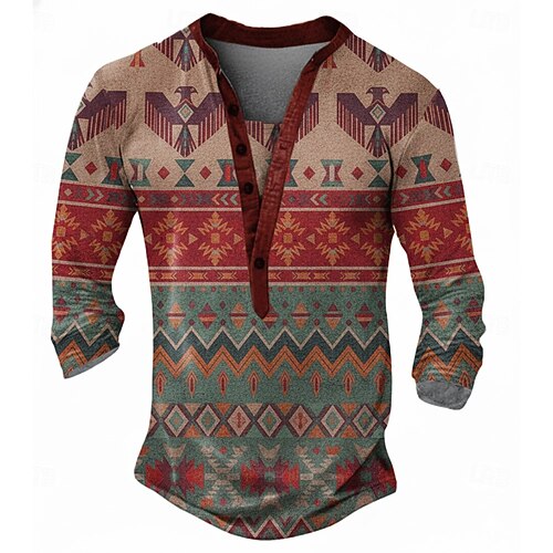 Per uomo Stampa Sudoccidentale Camicia Camicia Western Camicia da cowboy Manica Corta Stile Western Tribale Estate Primavera Colletto a Camicia Cachi