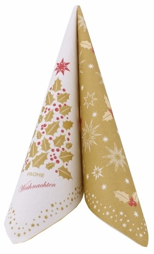 Airlaid Serviette Weihnachten Ilex in Gold , 40 x 40 cm, 50 Stück - APARTina
